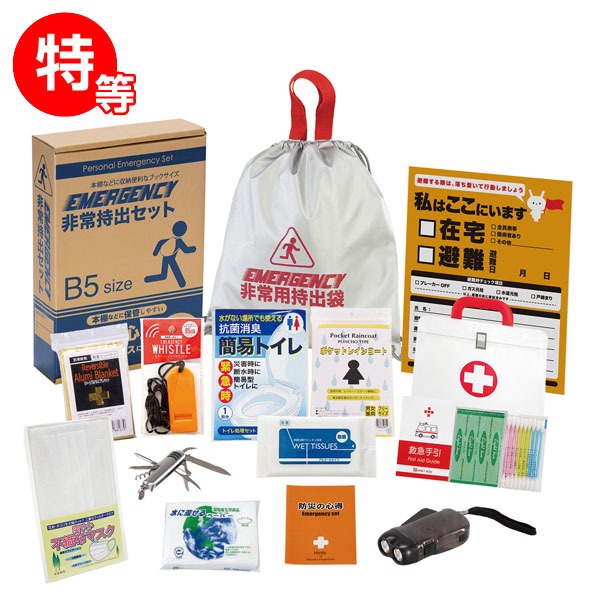 | 商品サイズ | 非常持出13点セットFX-30:パッケージ/278×60×190mm コンパクト防災7点セットCB-10:パッケージ/190×30×235mm 折りたたみウォーターバッグ:355×320×130mm 静音アルミブランケット:1300×0.03×2100mm 役立つレジャーシート:600×900mm 携帯用トイレ1P:パッケージ/100×170×8mm |