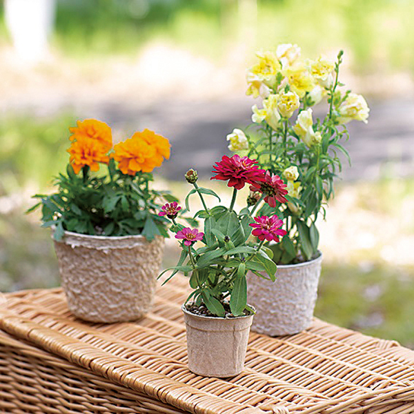 | 内容 | 自然派のおしゃれな贈り物 ●土に還る古紙を原料とした植木鉢を使用した、環境に優しい商品です。 ●セット内容:鉢、種、培養土、肥料 ●紙スリーブ巻き ●取扱説明書付き ※ご注文は100個単位でお願いします。 |