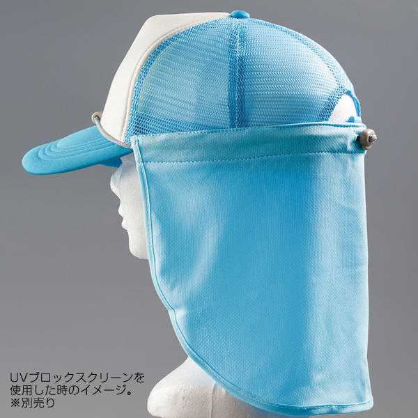 内容 | 後頭部は通気性の良いメッシュ生地を使用しています ●UVブロックスクリーン(MJ01OD059)と組み合わせると、さらに夏の紫外線対策に最適! ●フルカラー印刷対応 ●ポリ入り ※ご注文は48個以上でお願いします。 |
