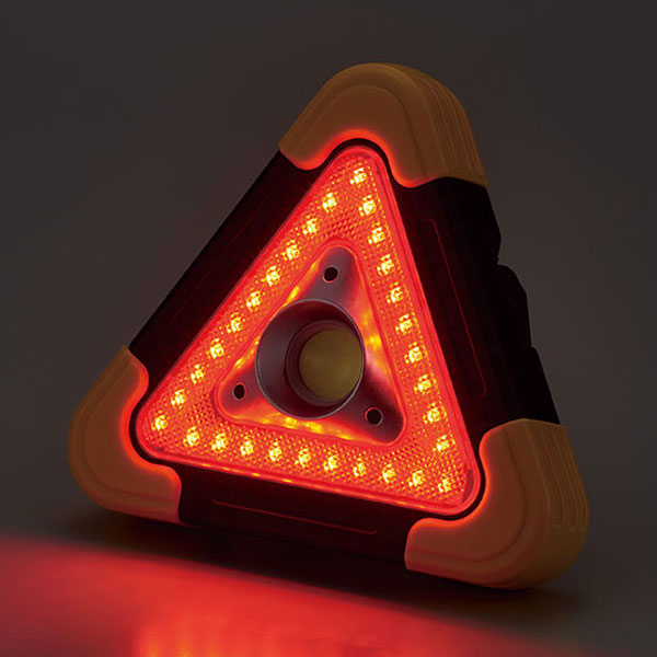 内容 | 高輝度COBライトがついて、ランタンやワークライトとしても役立つ三角停止板型ライト ●可動式のハンドルはスタンドとして使用可能です ●手持ちライトとしてフックなどに吊り下げてランタンとしても使用できます ●[COBライト] 最大300ルーメンで非常時のランタンやワークライトとして役立ちます (強:300ルーメン 弱:100ルーメン) ●[緊急用赤色灯] 使用用途に合わせて3種類の点灯、点滅モードを使い分けられる緊急赤色灯です (点灯、点滅(速))、点滅(遅)) ●ライトはスイッチを押すだけの簡単操作です 消灯→COB点灯(強)→COB点灯(弱)→赤色灯点灯→赤色灯点滅(速)→赤色灯点滅(遅) ●連続点灯時間の目安:約8〜12時間(アルカリ電池使用時) ●単3形乾電池×3本使用(別売) ●化粧箱入り ※ご注文は8個以上でお願いします。 |