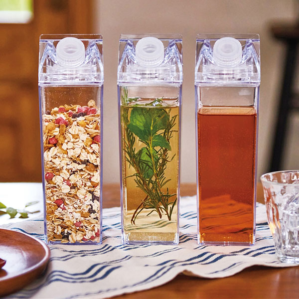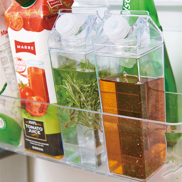 | 内容 | 牛乳パック型のモダンなクリアボトル ●飲み物はもちろん、シリアルやパスタなどの保管にも使えます。 ●冷蔵庫のドアポケットにすっきりと収納可能です。 ●上部のテトラ部分を外すことで、洗浄や詰め替えができます。 ●化粧箱入り ※ご注文は60個以上でお願いします。 |