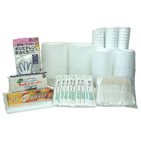 | 内容 | 在宅避難にそなえるBOXセット。用途や人数などに合わせて組み合わせて備えられます ●【セット内容】 ウェットティッシュ×2・5年保存水500ml×3・ライスクッキー・カンパン・ミルクビスケット・マジックライス(わかめ・五目・ドライカレー)×各2・加熱袋・発熱剤×3・水に流せるペーパー×2 ●3日分(1人分) ●化粧箱入り ※セット商品の色・柄は写真と異なる場合があります。 ※ご注文は2個以上でお願いします。 |
