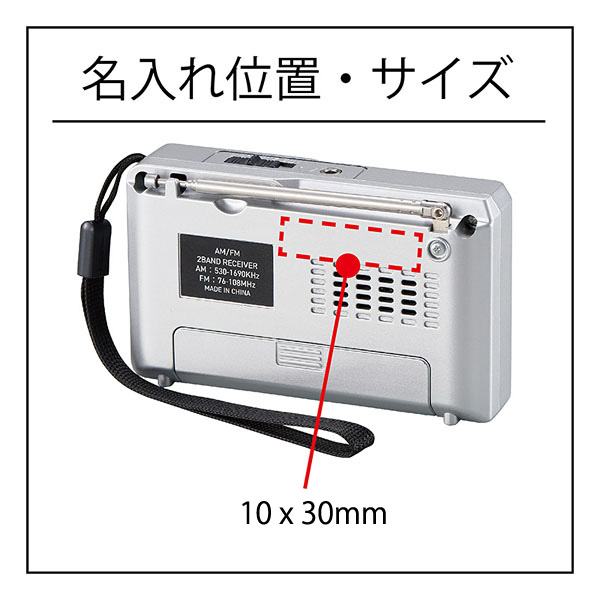 | 内容 | 使い方シンプル・乾電池式・ワイドFM対応のAM・FMラジオ。 ●慌てやすい災害時だからこそ、情報収集は操作が簡単な機器を! ●機能:1.AM、FMラジオ(ワイドFM対応)、2.同調ランプ ●付属品:両耳イヤホン ●単3電池×2本使用(別売) ●重量:約135g ●化粧箱入り ※ご注文は6個以上でお願いします。 |