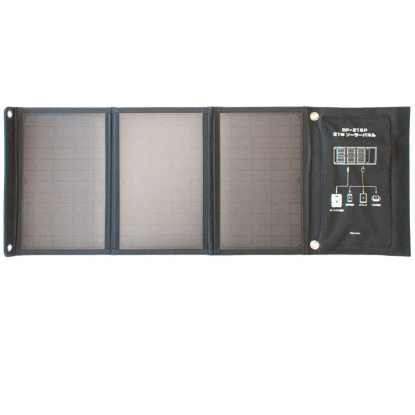 | 内容 | スマートフォンやポータブル電源の充電に最適!小型、軽量、広げればワイドサイズ! ●セット内容:本体・DCケーブル(変換プラグ付)・3-in-1ケーブル・取扱説明書 ●パネル最大出力21W ●DC、USB出力端子搭載 ●単結晶シリコンパネル ●防塵/防水等級IP60 ●重量:750g ●箱入 |