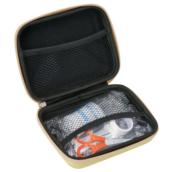 | 材質 | ケース:ポリエステル、ナイロン、EVA樹脂 綿棒:脱脂綿、ポリプロピレン サージカルテープ:ポリエステル PBT包帯:ポリブチレンテレフタレート ハサミ:ステンレス、ポリプロピレン |