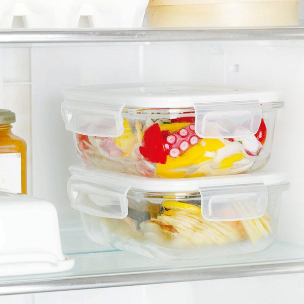 内容 | 保存も調理も彩りも!ホームミールシリーズ。 ●時短に!作りおきして、そのまま食卓へ。フタをしたまま温め可能。 ●整理整頓に!中身が見えるからきれいに整理できます。フードロスや節約にも貢献。 ●耐熱ガラスで、液もれ、色移り、ニオイ移りしにくい! ●フタをしたままレンジOK! ●フタを外してオーブンOK! ●本体容器のみ食洗機OK ●冷凍OK ●化粧箱入り ※ご注文は16個以上8個単位でお願いします。 |