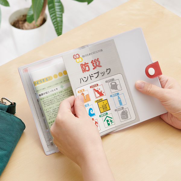 内容 | 防災心得ハンドブック・IDカードが付いた防災手帳。 ●セット内容:本体ケース、防災ハンドブック、IDカード ●クリアポケットには、地域の防災マップや必要な資料を収納しておくのに便利。 ●防災ハンドブックは、12ページの小冊子。防災心得・知識をカラーで解説。 ●IDカードには血液型やアレルギーの有無、家族の情報などを記載しておけるので、常に持ち歩くことをおすすめします! ●一人の時に災害に遭っても安心のアイテム。 ●重量:76g ●日本製 ●袋入り ※ご注文は19個以上でお願いします。 |