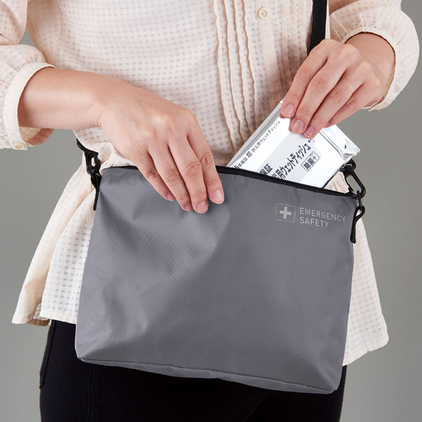 内容 | いざという時の為にカジュアルな備えをショルダー仕様でサッと持ち出せる! ●地震発生・災害非常時に、直ぐに取り出し、肩に携えるサコッシュタイプのポーチに最小限の避難グッズをセット。 ●B5サイズパッケージ入りでコンパクトに収納! ●セット内容:避難用サコッシュバッグ(マチ有り)、2WAYフラットライト(テスト用コイン電池内蔵CR2032×2)、ホイッスル、防寒レインコート、軍手、ウェットティッシュ(20枚入)、携帯トイレ1P(1回用)、ポケットティッシュ、エイトバン(大小×各2)、防災ハンドブック、携帯おにぎり(鮭)、備蓄用飲料水(500ml) ―――――――――――――――――― ●普段使っているバッグや小物と一緒に置いても違和感のないデザイン。 ●中身を守る撥水仕様。 ●水でも作れる携帯おにぎり。 ●バッグインバッグの防災ポーチとしても。 ●ショルダーベルトは着脱可能。 ●保存期間:約5年 ●防災士監修 ●重量:1055g ●E段化粧箱入り ※ご注文は3個以上でお願いします。 |