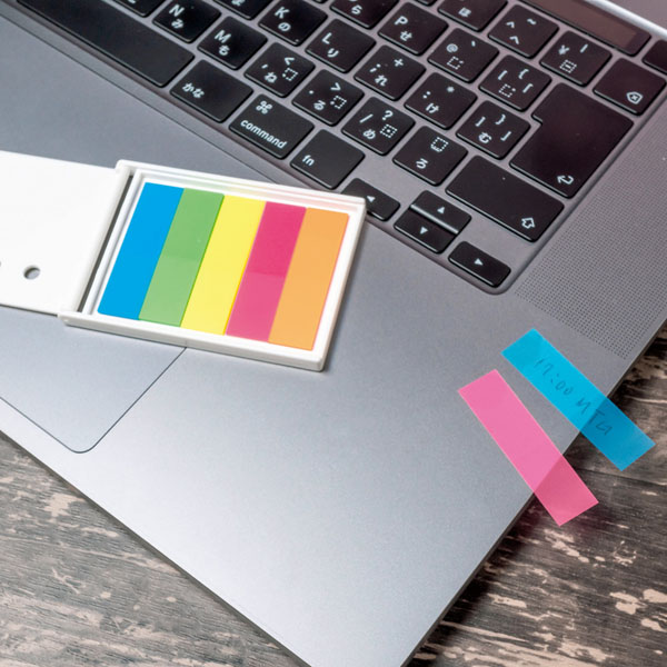 内容 | ハードケースに5色のフィルムフセンをセット。 ●半透明な素材なのでメモ書きの上に貼っても文字を確認でき、破れにくいこともポイント。 ●フセン枚数各20枚 ●重量:約18g ●透明袋入り ※ご注文は1,000個以上500個単位でお願いします。 |