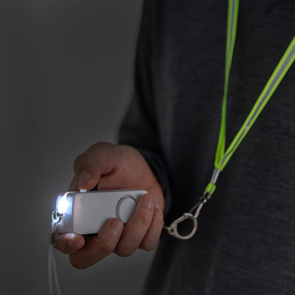 内容 | 夜道を照らすライトと防犯ブザーがひとつに! ●音量:85dB(距離1mで測定) ●照度:2280ルクス(距離10cmで測定) ●光度:22800mcd(距離10cmで測定) ●防水性能:IPX3 ●単4電池2本付 ●付属品:反射ネックストラップ、バンド ●箱入り ※ご注文は17個以上でお願いします。 |
