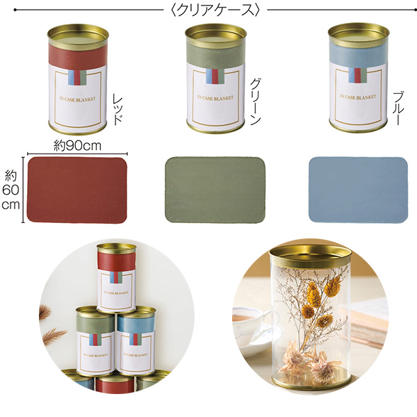 内容 | 店頭ディスプレイにうってつけ!是非積み上げて展示してほしいクリアボトル入りのブランケットです。 ●小物を飾って楽しめるクリアなケース入り ※ご注文は60個以上でお願いします。 |