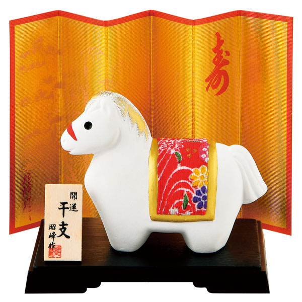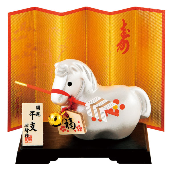 内容 | 気品あふれる午の横姿。 ●セット内容:屏風、プラ台、敷紙、マネキ板 ●化粧箱入り ※入金確認後出荷まで約2日間かかります。 ※ご注文は60個単位でお願いします。 |