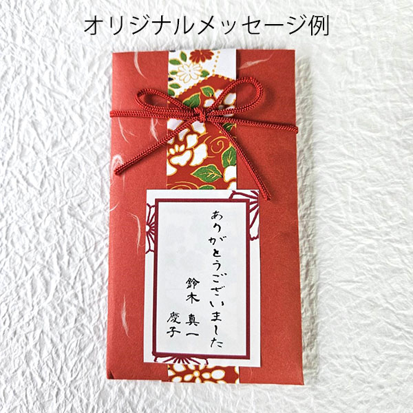 | 内容 | 新年のご挨拶としていかがでしょうか? ●おめでたい紅白に金糸の入った和紙で入浴剤を包みました。 ●ちょっとした贈り物に最適。 ●内容:入浴剤 1包 ●100個以上のご注文からパッケージにオリジナルメッセージを印刷可能です。詳しくはお問い合わせください。 ※帯の柄は、変更になる場合がございます。 ※ご注文は58個以上でお願いします。 |