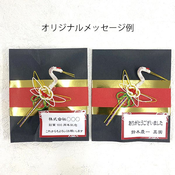 | 内容 | 新年のご挨拶としていかがでしょうか? ●水引の鶴が印象的。 ●内容:金平糖20g ●100個以上のご注文からパッケージにオリジナルメッセージを印刷可能です。詳しくはお問い合わせください。 ※水引の鶴は、デザインが変更になる場合がございます。 ※ご注文は52個以上でお願いします。 |