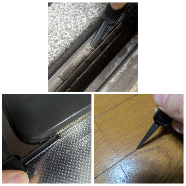 | 内容 | 窓サッシ、クローゼットレールのお掃除に。 ●フローリングの継ぎ目の汚れとりに。 ●キッチンレンジ周りの油汚れの除去に。 ●その他、身の回りのお掃除全般に。 ●ヘラ先端幅サイズ:3mm、6mm、9mm、18mm ●重量:約45g ●ブリスターケース入り ※ご注文は8個以上でお願いします。 |