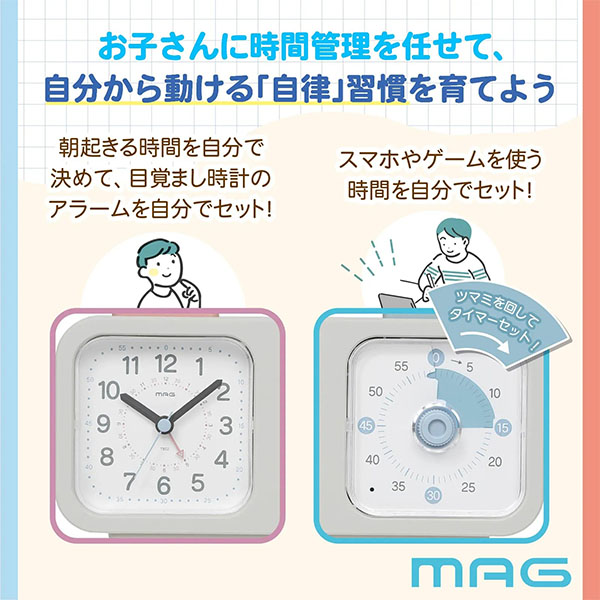 | 内容 | 「時刻」と「時間」を一緒に育むタイマー付き知育時計。 ●現在時刻と残り時間を同時に把握できます。 ●秒針は滑らかに動きます。 ●暗い場所でも便利なライト機能。 ●機能:連続秒針、電子音アラーム、ライト、スヌーズ、タイマー カウントダウン、タイマー 一時停止機能、タイマー 消音機能(ランプ点滅) ●電源:単3形アルカリ乾電池2本(別売) ●重量:285g ●化粧箱入り ※ご注文は5個以上でお願いします。 |