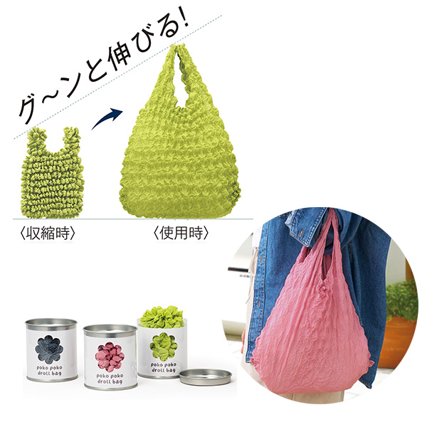 | 内容 | たたまずにコンパクト!ぽこぽこかわいいドロールバッグ。 ●持ち歩きやすい手のひらサイズ。 ●グーンと伸びる! ●ディスプレイ映えするクリアケース入り。 ●筒型クリアケース入り ※ご注文は91個以上でお願いします。 |