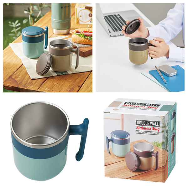 | 内容 | 機能的で丈夫な内側ステンレスの2層構造。握りやすい持ち手のタフなマグカップ。 ●蓋はパッキン付きで漏れずに安心。 ●握りやすいデザインの持ち手。 ●熱が逃げにくい二重構造。 ●保温・保冷性能の向上。 ●温度差による結露を軽減。 ●外側が熱くなりにくいので持つ時も安心。 ●容量:350ml ●化粧箱入り ※ご注文は64個以上でお願いします。 |