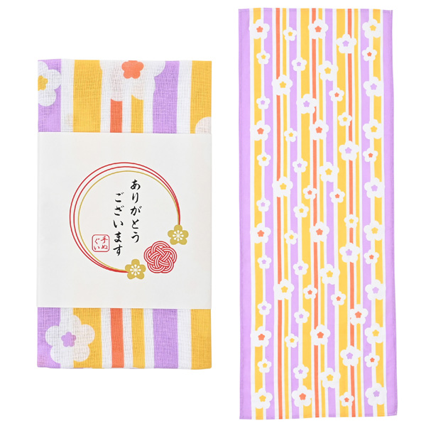 | 「ありがとうございます」和柄分様手ぬぐい(縦縞梅散らし) | |