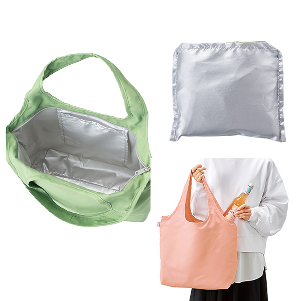 | 内容 | 上質感のある生地を使用した、保冷温機能付きの高機能トート。 ●内側ポケット付き。 ●内側の温度を保つアルミコーティング。 ●ファスナー仕様 ●ポケットに収納して小さくたためます。 ●再生PET100% ●再生PET繊維:ペットボトルや食品トレーなどを回収し、再生繊維として有効活用。 ●包装袋入り ※ご注文は54個以上でお願いします。 |