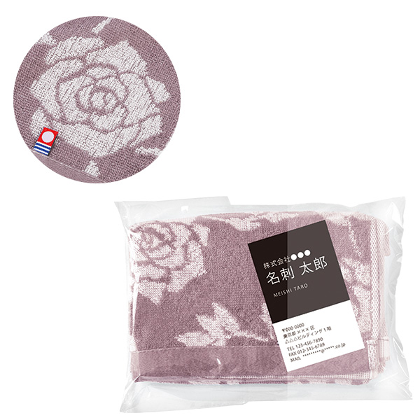 | 内容 | 人気のローズ柄を大胆にあしらった深みのある色味がシックなタオル。 ●パイルで柄を表現した今治の技が光る一品。 ●パッケージの前面ポケットに名刺を入れることができます。 ●今治タオル認定番号:第2020-990号 ●日本製 ●ポリ袋入 ※ご注文は116個以上でお願いします。 |