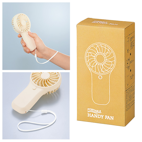 | 内容 | ハンドストラップ付きのお手軽ファン。 ●乾電池式 ●セット内容:本体、ハンドストラップ ●単三乾電池2本使用(別売) ●化粧箱入 ※ご注文は80個以上でお願いします。 |