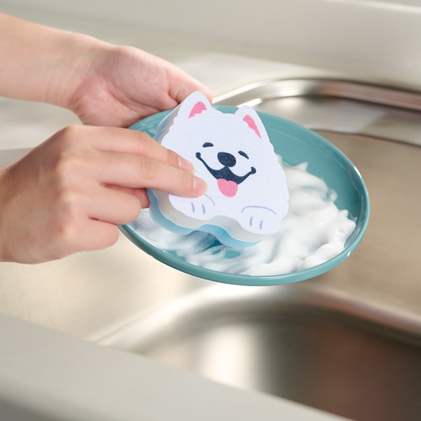 笑顔があふれますように サモエドさんキッチンスポンジ