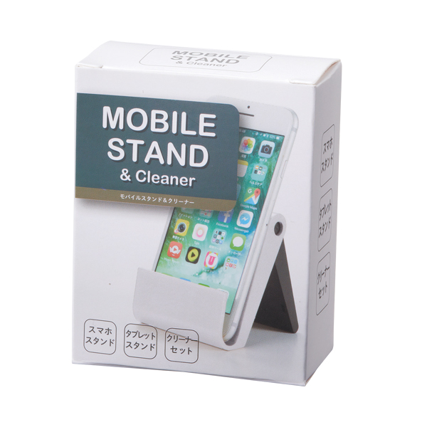 | 内容 | 日常的に便利に使えるクリーナー付きスマホスタンド ●フルカラー印刷対応 ●化粧箱入り ※ご注文は215個以上でお願いします。 |
