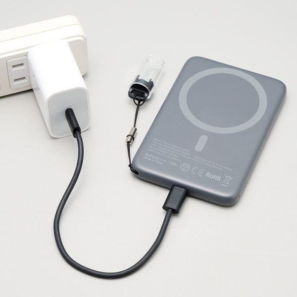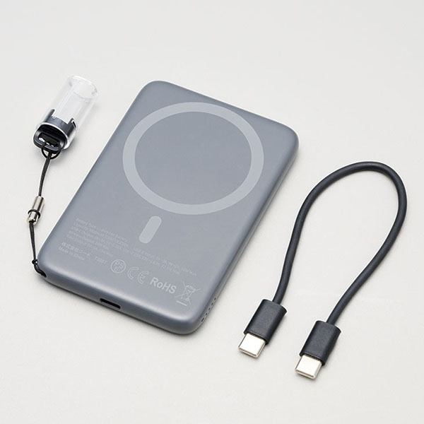 | 内容 | マグネット付きでMagSafe対応スマホにピタッと装着! ●ケーブルを使用した有線充電も可能なため、幅広いターゲット層に対応したモバイルバッテリー。 ●ストラップとケーブルが一体化。 ●電池残量表示 ●容量:5000mAh ●入力:5V/3A、9V/2A ●出力:5V/3A、9V/2.22A、10V/2.25A、12V/1.67A ●ワイヤレス出力:15W MAX ●複数ポート合計出力:5V/3A、15W MAX ●ストラップ型充電ケーブル付属(Type-C to Cケーブル) ●取扱説明書(保証書付き) ●PSEマーク ●重量:122g(ストラップ・ケーブル含む) ●化粧箱入り ※ご注文は4個以上でお願いします。 |