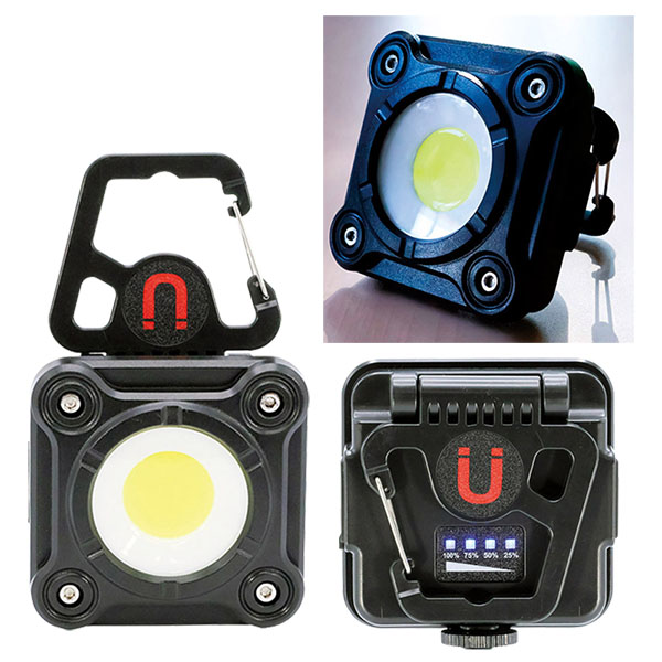 | 内容 | 小型で広範囲を照らす最大1,000ルーメンのCOBライト。 ●「掛ける」・「置く」・「貼りつける」明るく照らす使い方は3通り。 ●HIGH・LOW・点滅の3段階切り替え。 ●充電式 ●IPX4 防沫形 ●付属品:充電用USBケーブル(Type-C)、取扱説明書 ●重量:約205g ●ブリスターパック入り ※北海道、沖縄、および離島は別途運賃が必要です。 ※ご注文は5個以上でお願いします。 |