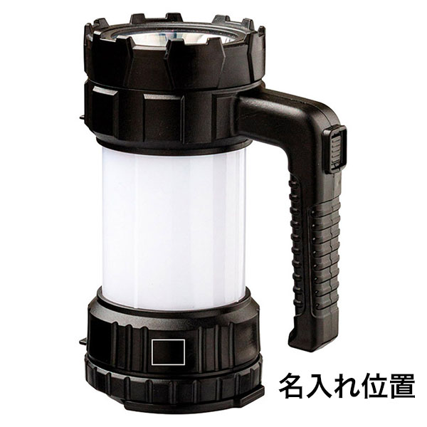 | 内容 | 大きなハンドルのついた持ちやすい懐中電灯スタイル。 ●懐中電灯はもとよりランタンとしても使用可能。 ●ライト(強・弱)、ランタン(白・オレンジ) ●単三乾電池3本使用(別売) ●重量:約257g ●化粧箱入り ※北海道、沖縄、および離島は別途運賃が必要です。 ※ご注文は10個以上でお願いします。 |