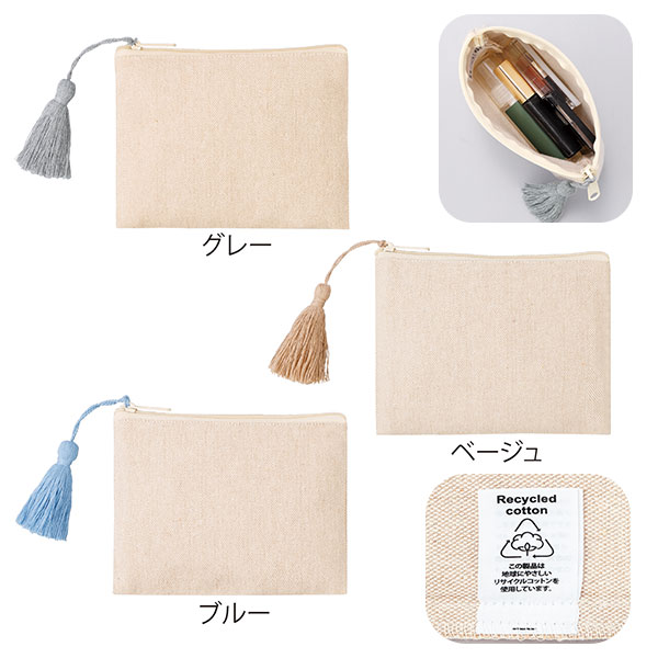 | リサイクルコットンタッセル付きフラットポーチ | |