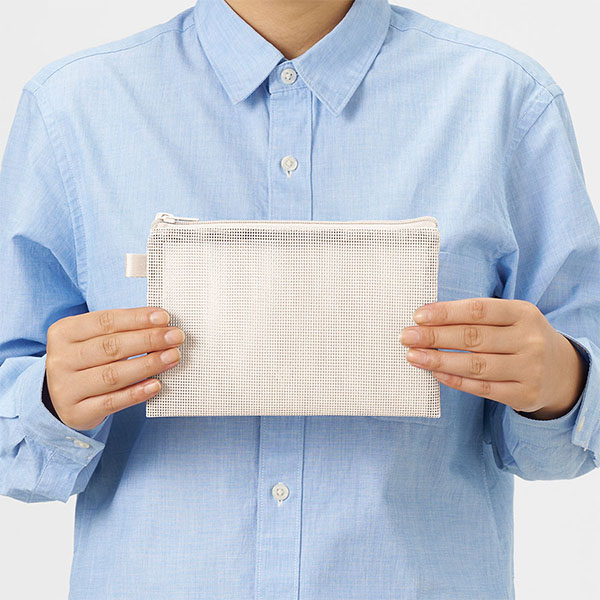 | 内容 | 通気性抜群なハードメッシュポーチ。 ●形が崩れにくいのも魅力的。 ●ペンやステーショナリーが入る横長タイプ。 ●便利なループ付き ●10枚でPP袋入り ※ご注文は42個以上でお願いします。 |