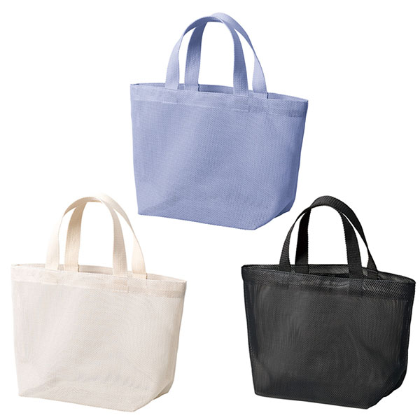 | 内容 | 透け感のあるメッシュ素材のトートバッグ。 ●濡れたものも気軽に収納! ●自立する、ハードメッシュバッグ。 ●折り畳み傘や500mlペットボトルが縦に入るサイズ感。 ●容量:約6L ●10枚でPP袋入り ※ご注文は14個以上でお願いします。 |