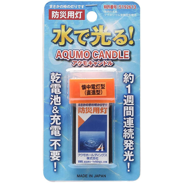 ●水に浸すと点灯し(1cc程度)、暗くなりはじめたら再度水に浸す事で最低1週間程度点灯します。乾燥した状態で5年はかわらず、いつでも安心して保存が可能。