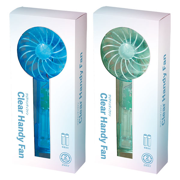 | 内容 | 2WAY仕様のクリアハンディファン。 ●夏場の外出時に欠かすことができないハンディファン。 ●見た目も涼しげなクリアタイプ。 ●外出時にはハンディファンとして、おうちの中やデスク周りなどでは卓上スタンドとして使用することができます! ●単四形アルカリ乾電池2本使用(別売) ●化粧箱入り ※ご注文は91個以上でお願いします。 |