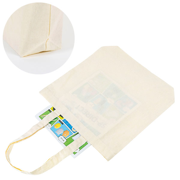 | 内容 | 再生コットンを使用した環境にやさしいトートバッグ。 ●底マチ付きで収納力あり! ●サブバッグにも便利で使用用途が広がります。 ●使うほどに馴染むナチュラルな質感も魅力。 ●環境負荷の少ない素材を使用することでイメージアップにも繋がり広告効果も上がります。 ●重量:約60g ●裸梱包 ※ご注文は200個単位でお願いします。 |