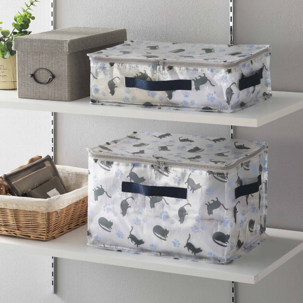 | 内容 | 用途で使い分けられる大小2個セット。 ●持ち手付きで運びやすく、猫柄ボックスでお部屋もスッキリ! ●使用しない時はコンパクトに収納できます。 ●半透明生地なので、中身が見える。 ●持ち手が両方に付いている。 ●ダブルファスナーで開閉しやすい。 ●口元:ファスナー ●袋入り ※ご注文は67個以上でお願いします。 |