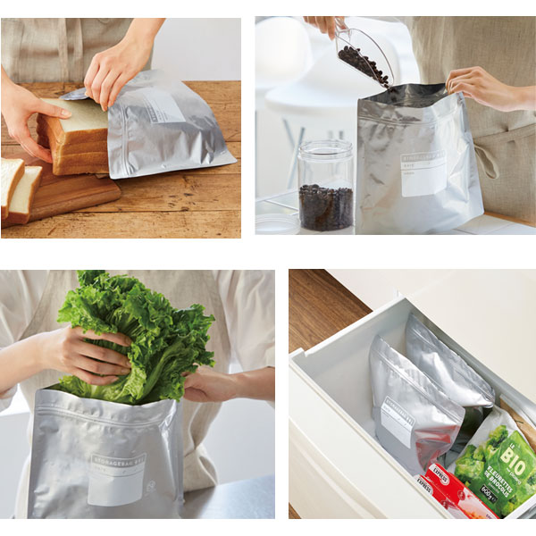 | 内容 | 3層構造で食材をおいしく保存できるアルミ製ジッパーバッグ。 ●収納力たっぷり。 ●そのまま冷凍庫で保存。 ●コーヒー、紅茶などの常温保存にも。 ●食材のおいしさを守る! ●3層構造:PET(空気・臭いを遮断)、アルミ層(光を遮断)、PE(水に強い) ●内容量:3枚 ●化粧箱入り ※ご注文は120個以上でお願いします。 |