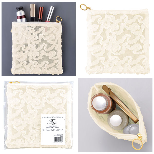 | 内容 | 軽やかなメッシュや繊細なディテールなど、細部までこだわった高級感あるポーチ。 ●華やかなデザインが印象的。 ●シンプルで上品なフリル。 ●中身が外から確認できる。 ●通気性が良く衛生的。 ●薄くて軽量。 ●コンパクトで持ち歩きやすい。 ●リングタイプの引き手はゴールドで高級感UP。 ●ポリ袋入 ※生地の取り都合により、柄の出方が写真と異なる場合があります。 ※ご注文は89個以上でお願いします。 |